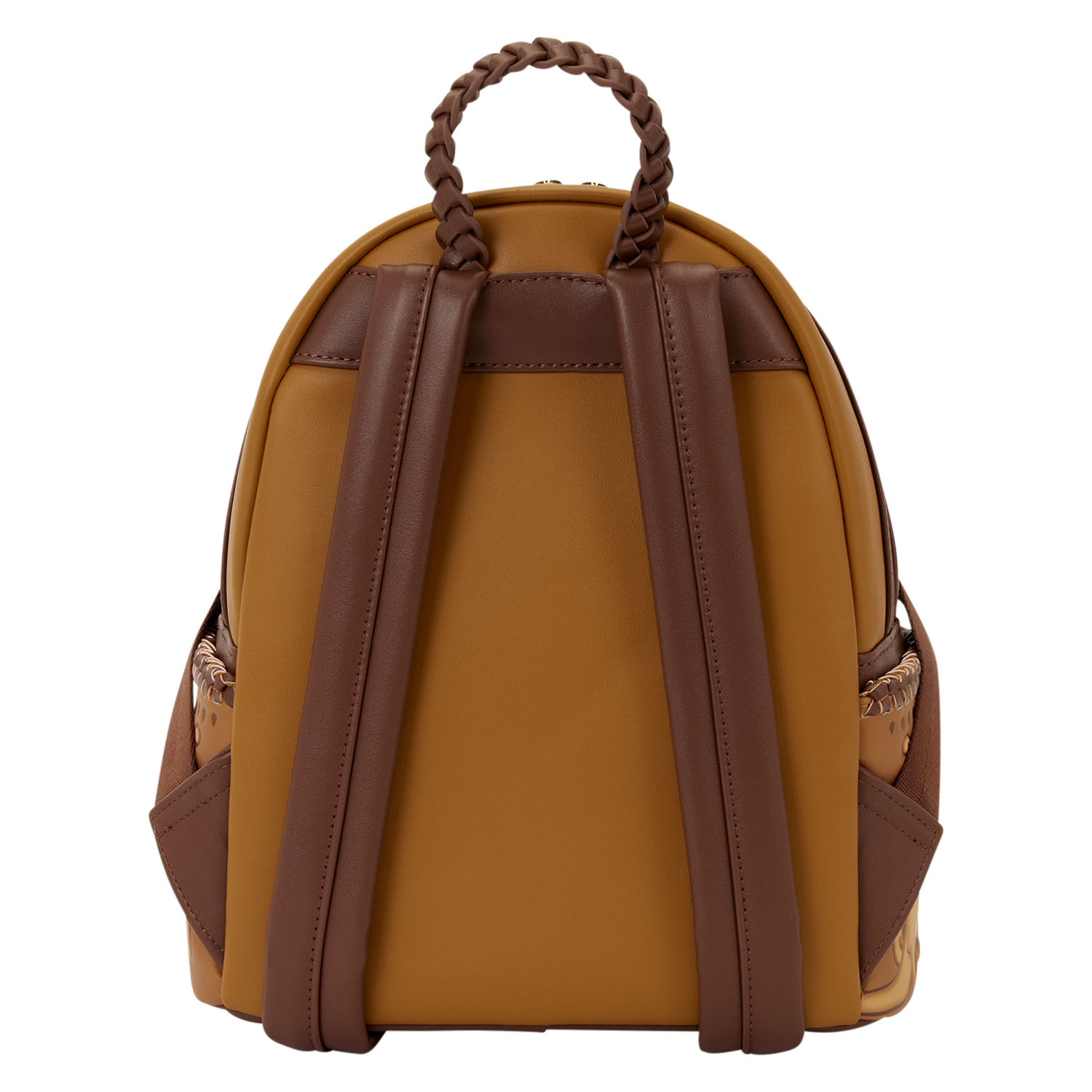 This mini backpack is inspired by Disney's Rescuers Down Under. You'll find Jake front and center on the front pocket in debossed and applique detail. Bernard and Miss Bianca can be seen above the front pocket. More animal friends are visible on the side pockets. Cowboy faux leather and a braided top handle bring this look together.