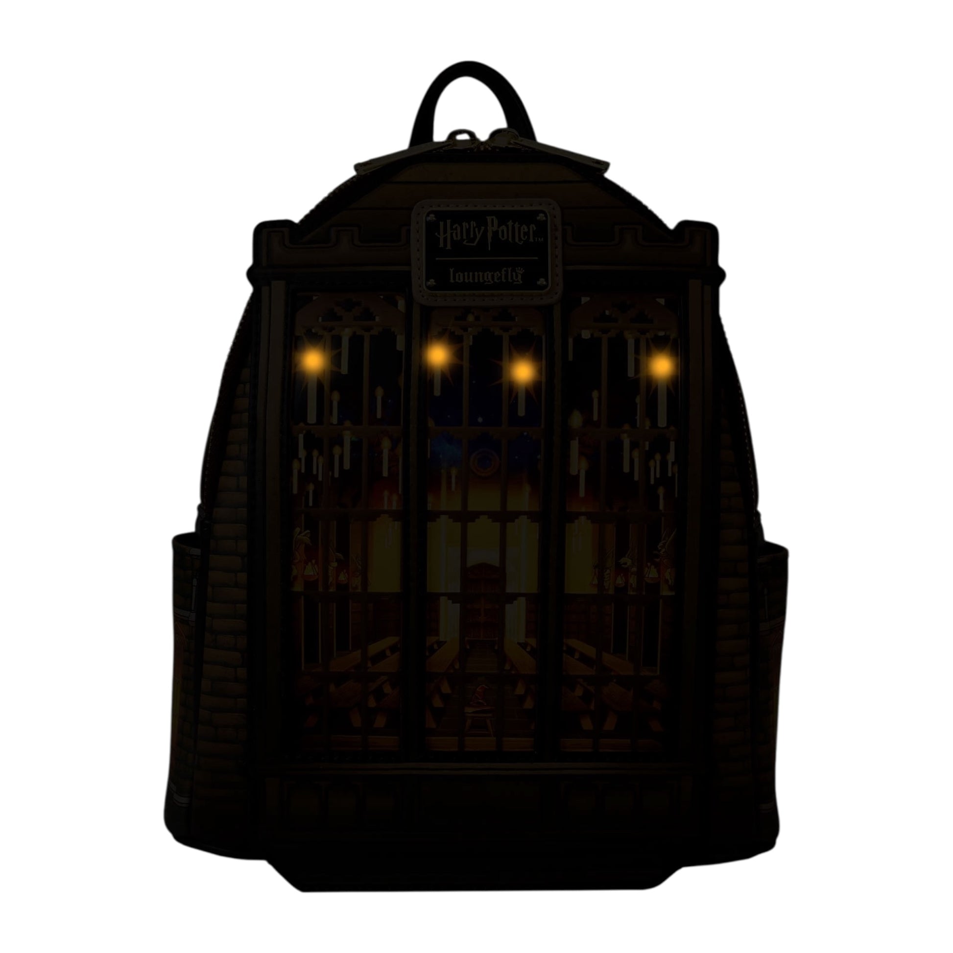 Catching the Hogwarts Express to embark on a magical journey? Arrive in brilliant style with our Hogwarts School of Witchcraft and Wizardry Harry Potter mini backpack. A close-up “window” view of the Great Hall offers a cozy peek inside. Candles appear to illuminate the printed brick façade, and the flames light up in the dark! On the back, you’ll find the Hogwarts crest and Hedwig perched above. Pack your daily essentials—and perhaps a few potions—to take off on imaginative adventures.