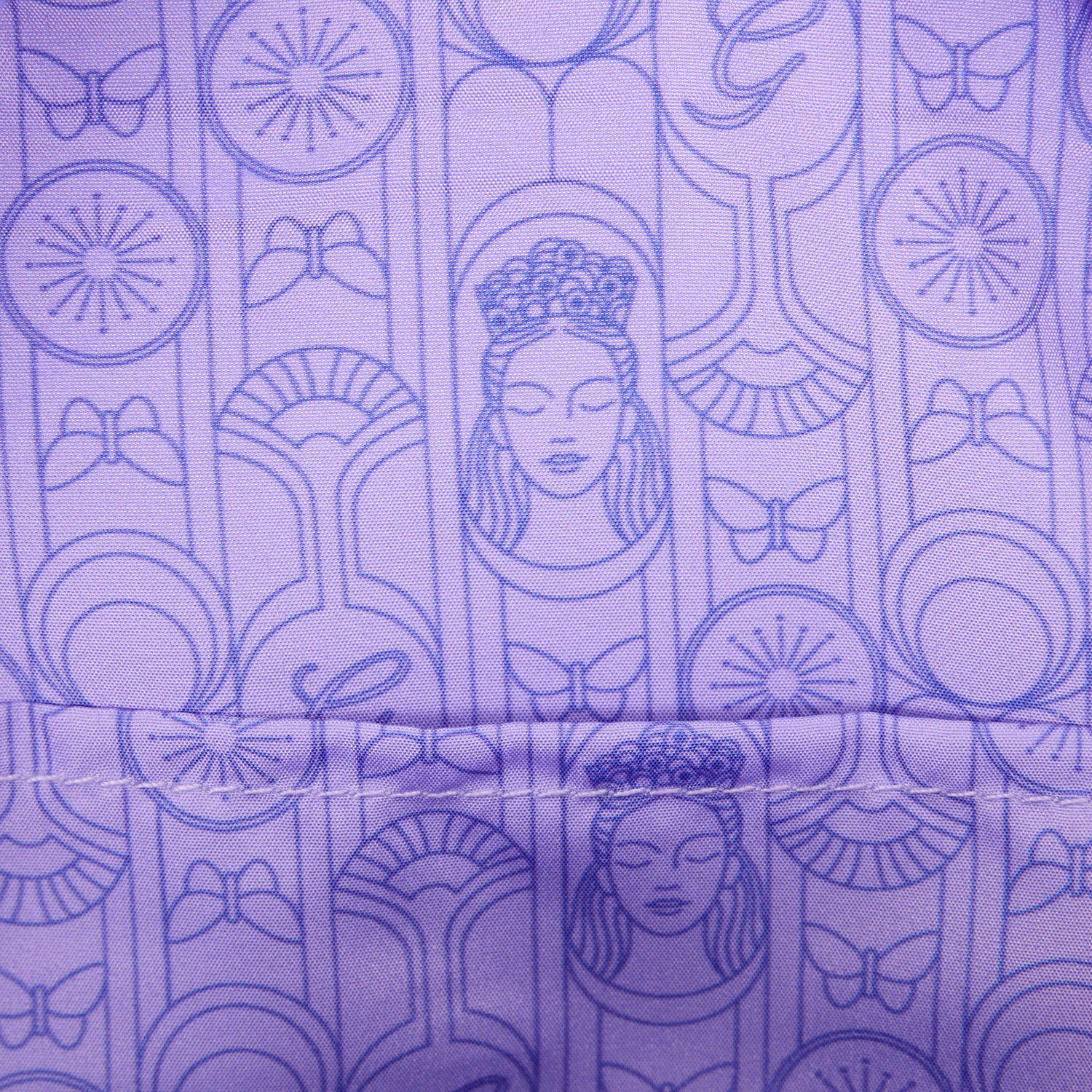 We know, it's good to see more Glinda-inspired styles, isn't it?! This gorgeous mini backpack features pearlescent faux leather with elegant details, including silver foil, rhinestones, and raised tonal embroidery. Over the front pocket, you'll find a clear PVC bubble with Glinda inside it! Butterflies and swirling designs cover the bag.