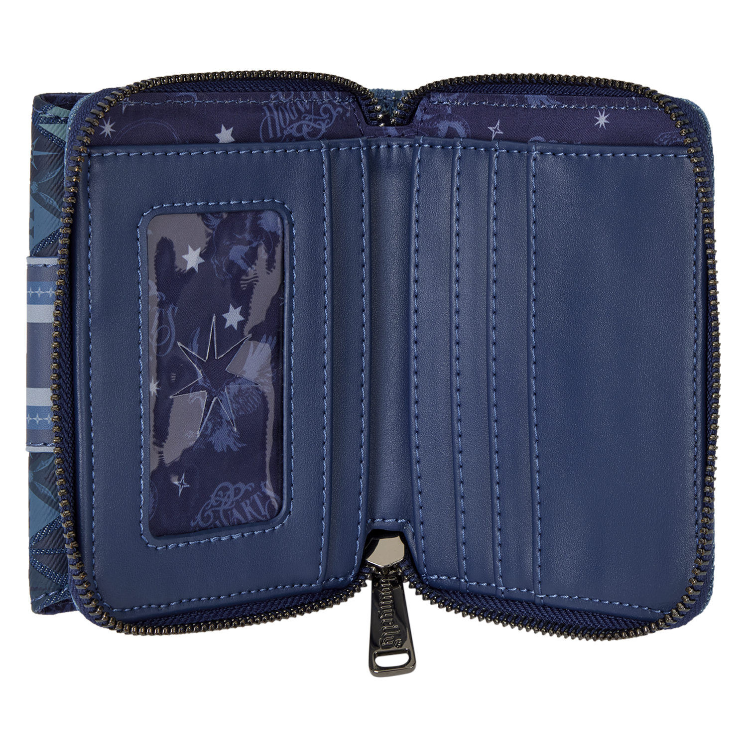 This wallet features the Hogwarts crest on the front against a blue argyle-patterned background. On the back of the wallet, you'll find a debossed image of the Hogwarts castle and Marauder's Map footprints! Inside, there are five card slots and one clear slot for an ID! It's the perfect magical touch for your everyday!