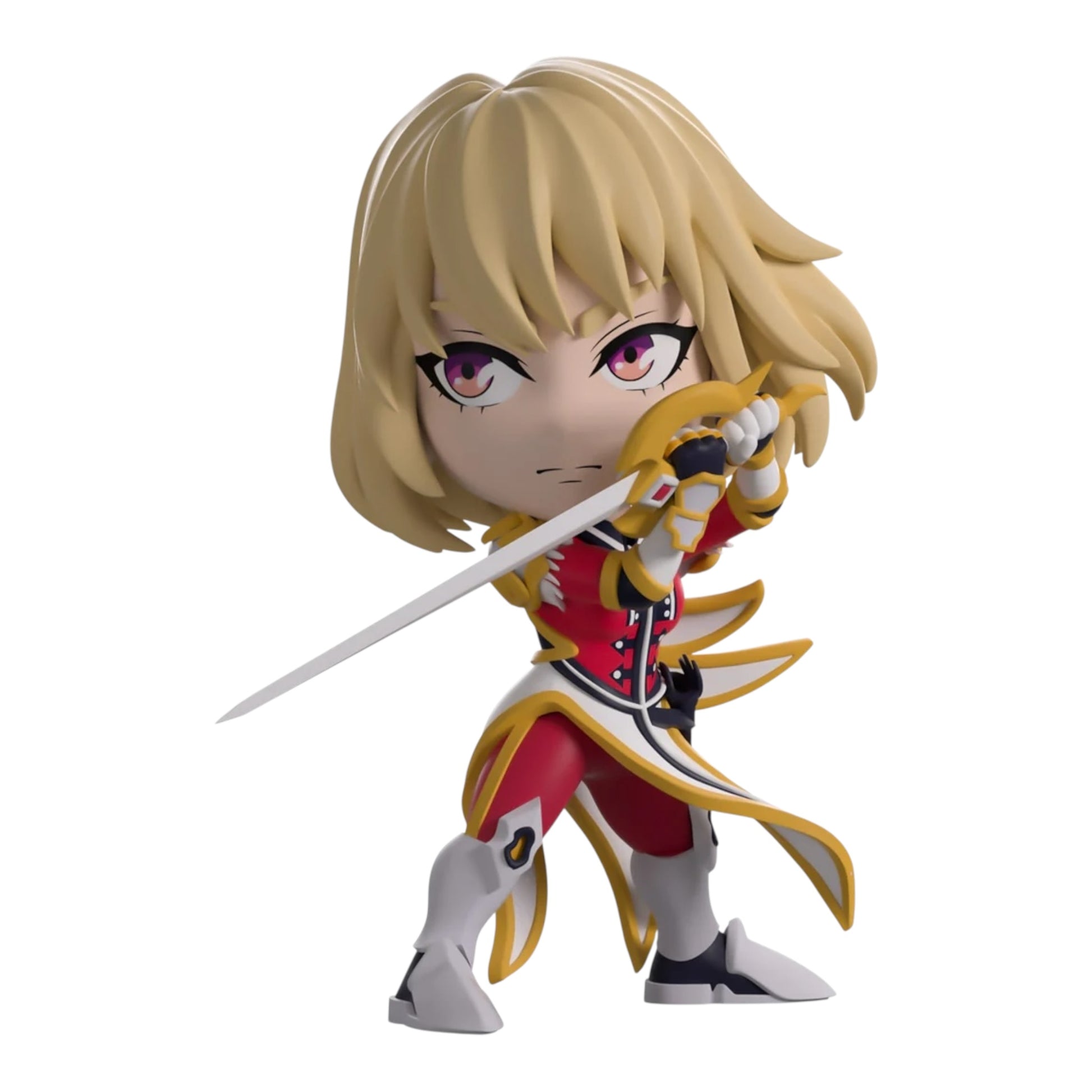 The Dancer has slashed her way elegantly into Youtooz for a dazzling dangerous debut! At 4.5 inches tall and posed holding her slender Sword of Light pointed down as she readies to unleash a flurry of quick blows, her pink-orange eyes stare out in determination as golden blonde hair flicks out to the side of her head. Wearing ornate red and white armour that has a deep gold trim and wraps around her twisting body, a long sheath hangs to her side as she wears pointed white greaves that come up to cover her knees. The exterior of his packaging looks onto a street crossing with the lights from building windows shining through the darkness of night. The interior then is covered in a white-to-blue gradient with the ‘Solo Leveling’ logo printed on the back, while the protective sleeve looks up at a dilapidated building as a large blue moon shines above a city skyline as his figure can be seen through the large clear window at the packaging’s front. This collectible ships in a matte, embossed, protective outer sleeve and a custom-sized plastic protector for maximum protection during shipping.